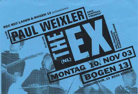 FREITAG 30.01.04 THE HAPPYSAD: 10 Songs im BOGEN 33 - SECONDHAND BROCKI SHOP Zur Wiedereröffnung an der GEROLDSTRASSE 33 Apero 19H Konzert 21H |