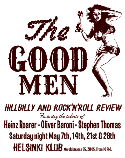 | FREITAG 2.April 2004 The HAPPYSAD Heinz Roarer & Babs Hiestand TO BE HAPPY!!! Konzert um 21.15 HELSINKI in der Flachpassbar, Letzigrundstadion ZH |